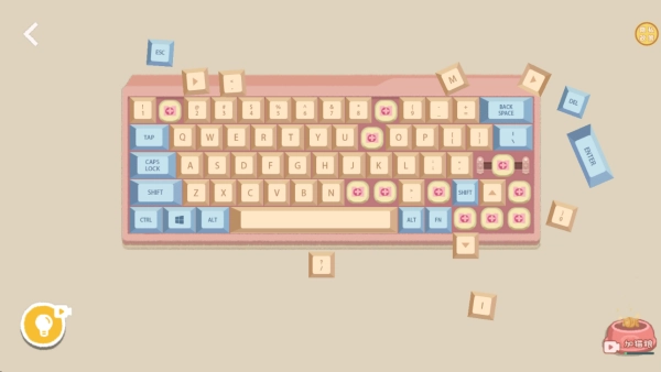 进入键盘收纳关卡后,需把按键放到指定位置,并且要在规定时间内完成收纳任务。