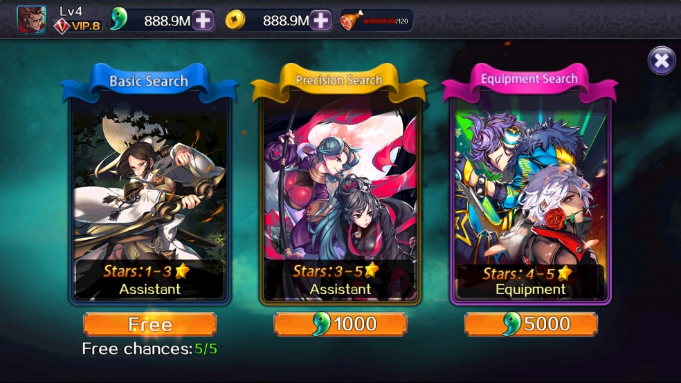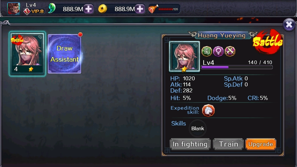 在每场战斗中,玩家可以搭配一名副将。副将相当于第二个可操控角色,拥有独立的生命值,既能承受伤害也具备输出能力。每个副将都配备专属的武器与技能,其中部分副将还拥有远程攻击的特长。游戏初始阶段,玩家仅能使用一星副将黄月英,后续随着游戏进程推进,可通过搜索功能获取更多副将,首次教学性质的搜索操作不会消耗金币与蓝玉资源。