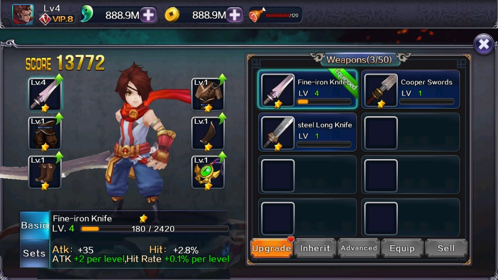 锻冶石通常在通关后开启宝箱获取,普通宝箱里一般只有LV1和LV2的锻冶石,LV3的大概率后续关卡会出现。我手里的LV3-4锻冶石是通过商店内购抽取得到的。另外,一星武器大多只有3次升级机会,武器星级越高升级次数就越多(不过商店购买的四星武器无法升级)。还要注意武器有武器槽,初始只有3个,若不使用蓝玉解锁,就只能选择丢弃武器。其实前期的武器到了后期基本派不上用场,所以丢弃也没什么可惜的。