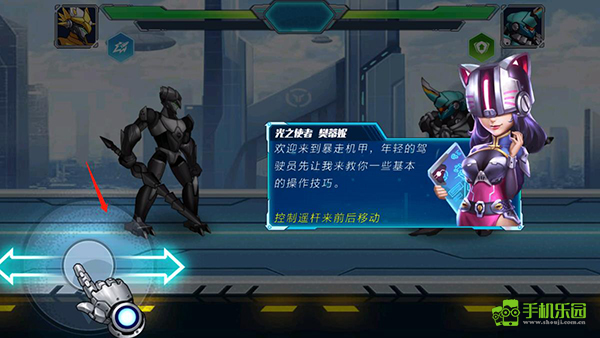 1、玩家需要控制摇杆来帮助机甲前来移动;