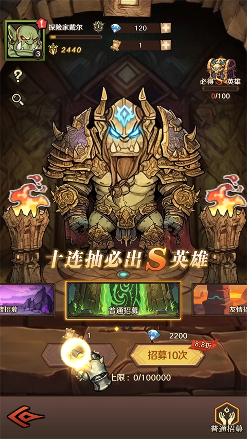 1、无废卡公平养成:游戏内所有英雄都能借助觉醒系统、符文套装、传说饰品、神兵等模块进行深度培养,低星英雄也可直接晋升为红卡,让玩家获得“全卡有用”的养成体验。