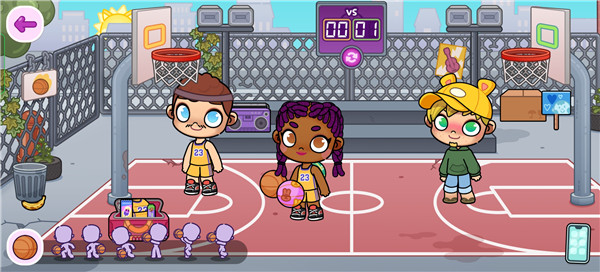 5、返回主页面后,能够切换至其他不同场景,例如可以让角色进行打篮球等各类运动项目。