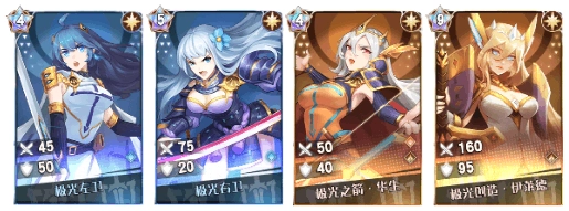 极光套路是原武族的招牌套路之一,核心卡牌一共4张,分别为:极光左卫,极光右位卫,极光之箭·华生和极光创造·伊莱德