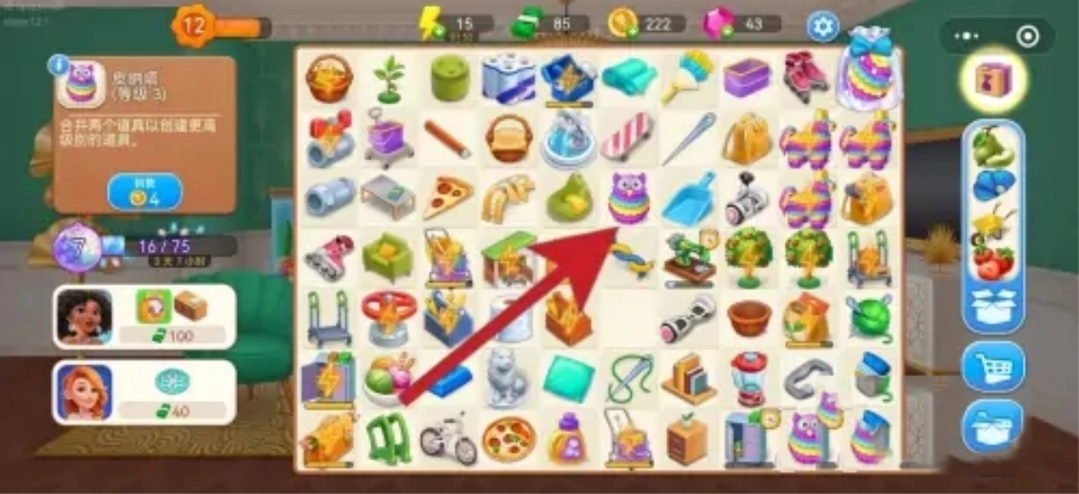 在四级锁柜处点击获取工具后,就能够着手合成皮纳塔了,具体的合成顺序是一级皮纳塔先合成二级皮纳塔,接着合成三级皮纳塔,再到四级皮纳塔(需要说明的是,从四级皮纳塔开始会产出糖果类道具)。