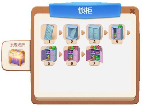 珍奇宝箱能够获取合成锁柜生成器,借助合成系统可按如下顺序升级:一级锁柜→二级锁柜→三级锁柜→四级锁柜(四级锁柜开启运输设备、缝纫机及皮纳塔工具的生产功能)→后续等级以此类推。