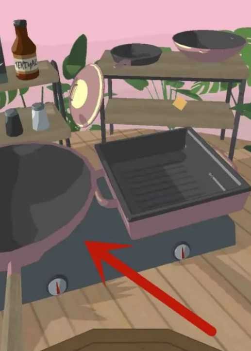 1、滑动视角屏幕,我们能看到各式各样的厨房器材,其中涵盖了食材区域与做菜区域。