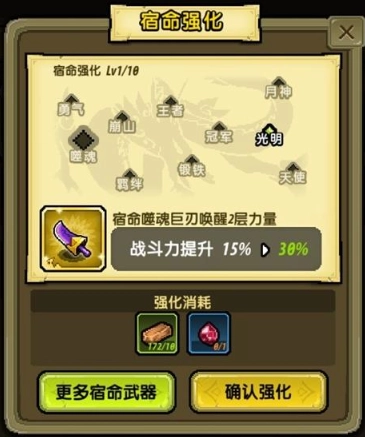 强化宿命武器可大幅提升战力;