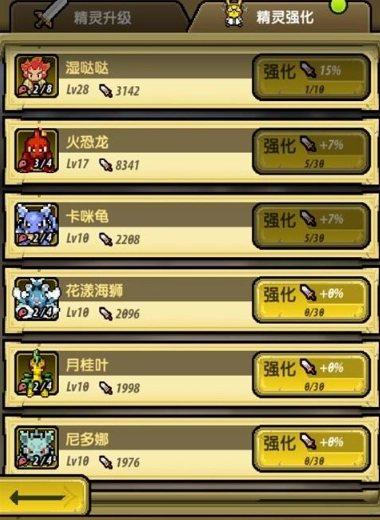 通过对精灵进行强化也可提升战力;