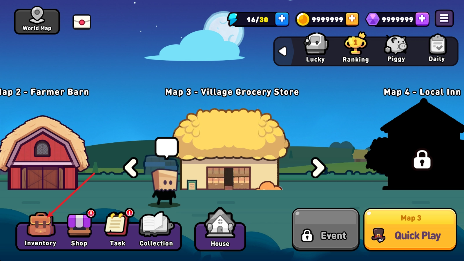 随后退回到主界面,点击左下角的背包图案。