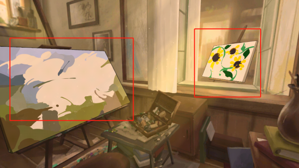 点击画架,练习速写,依次点击图中三个位置