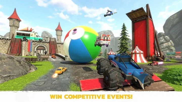 2、货车为圆形设计,玩家需要操控车辆完成翻转动作,率先穿过指定圆环的玩家将赢得奖励。