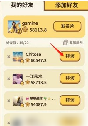 2.找到想要拜访的好友,然后点击拜访。