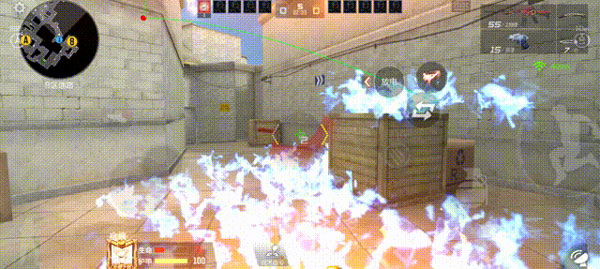 这个投掷点位能够阻拦潜伏者集结强行冲出B门,迫使架在拱门的狙击手和埋伏在木箱旁边的潜伏者后退,为赶来支援的队友或是从A通绕后的队友争取时间,下面是潜伏者视角的展示: