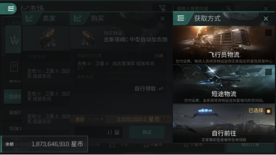 市场交易是当前游戏里玩家们最常使用的交易方式,我们只需把自己的货物存放在空间站,接着点击出售,物品的相关信息和定价就会直接被列入市场列表,操作起来十分方便。不过交易的物品存在这样的情况:卖家在哪个空间站售卖,买家就需要前往哪个空间站提取。尽管买家能够选择物流运输服务,但这会导致成本增加,而且还可能面临货物被劫持的风险。因此,在一些偏远星系出售物品时,要是我们不适当降低价格,通常是难以将物品卖出的。
