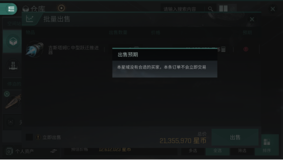 在售卖货物时需要注意:系统自动设定的售价是当前空间站收购单中的最高价,目的是方便玩家快速交易。不过像“吉他”这类大型贸易中心所在的星系,自动定价往往会远低于市场价。因此,如果不是特别急需资金,建议亲自查看市场上的真实售价后再确定合适的定价。另外,若所选空间站没有该物品的收购单,系统会误判其为稀有货物,导致自动定价大幅虚高,这样的价格是绝对无法卖出的。所以无论何时售卖物品,都务必先确认售价再点击确定。