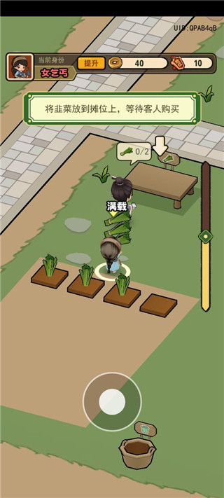 采集弄农田上的作物,放到摊位上卖,获得金币。