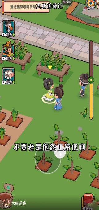 生产方面:利用已解锁的区域开发多样化的收入来源,建议雇佣适配岗位的员工,以此实现金币的持续产出。