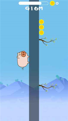 玩家操控小猪爬树时,树的左右两侧散落着许多金币,需要灵活调整小猪的爬行方向,把这些金币都收集起来。