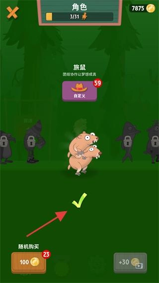 1、在角色界面选择【旅鼠】角色(需【59】碎片解锁),确认选择后点击对勾,进入关卡开始挑战。