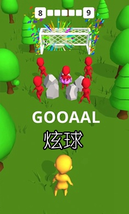 调整好角度,瞄准球门,一脚射门,球进了!不过要注意,在你成功破门之前,可不能把对手的球员全都撞倒哦。