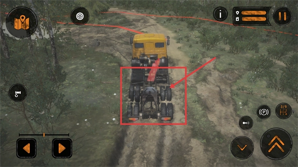 2、驾驶过程中通过方向键、加速键以及挡位(3/9)来操控车辆,需精准操作以完成半挂车的衔接任务。