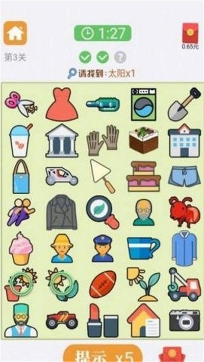 这是一款简单有趣的休闲小游戏,每次找到不同的物品,就能开启真金红包。