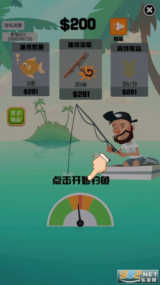 在这里你能体验到钓鱼的乐趣。游戏操作并不复杂,主要考验玩家的手速,一旦慢了,鱼就会逃走。