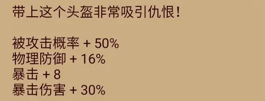 现有通用红色装备:憎恶面具加成60%,大师头巾加成70%;专属武器方面,圣骑专武《圣鳞甲》加成65%,守护、冰剑的专属武器因涉及技能强化内容,此处暂不展开说明。此外,“嘲讽”相关内容将在特质部分详细阐述,这里也不再过多赘述。