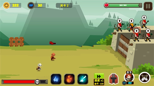 在堡垒保卫战游戏里,玩家能通过滑动屏幕实现场景移动,点击游戏下方的英雄图标就能召唤英雄,每次召唤都要消耗特定数量的经验。游戏下方设有三个技能,玩家可借助这些技能消灭敌人。游戏中的英雄支持升级操作,玩家点击上箭头就能完成升级。当所有敌人都被击败后,玩家即可通关,通关后点击下一关就能继续挑战新的关卡。