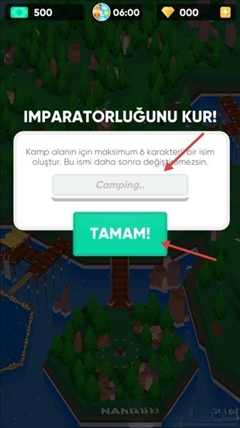 1.游戏开始时,玩家需要根据提示创建一个营地名称,点击【TAMAM!】确认。