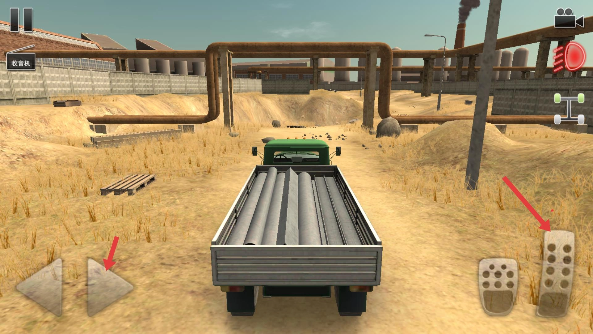 进入驾驶界面后,通过左侧的方向按钮操控卡车转向,借助右侧的踏板按钮调节车速,谨慎驾驶,保证卡车平稳运行,完成货物运输。