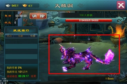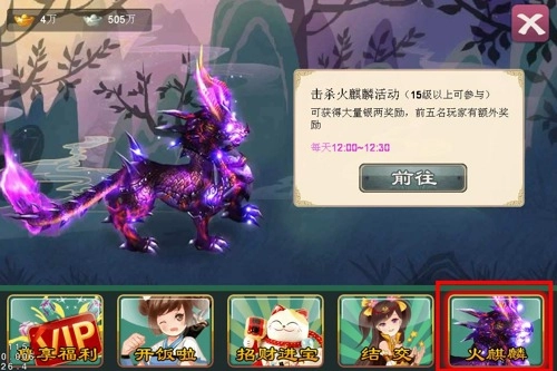 在奇遇界面中点击火麒麟,切换BOSS界面。