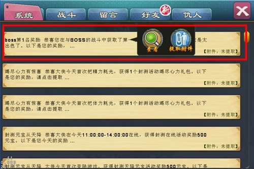 奖励可在邮件中查询,提取。