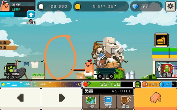 或许能考验你的恒心——连治愈我的决心都无法坚持,又怎能轻易说爱?这是一款充满趣味的RPG像素游戏,采用复古的像素美术风格,角色与场景都带着满满的熟悉感,最让人着迷的莫过于物品爆炸时零件四散飞溅的瞬间,视觉效果极具冲击力。游戏的故事设定在一个被僵尸病毒席卷的世界,多数人都沦为了僵尸怪物,主角的妻子也未能逃脱厄运。为了拯救爱人,你需要协助主角收集各类材料,最终研制出救命的疫苗。在《怪物老婆养成记》中文版里,玩家每天都得推着一辆小车出门拾荒。这里的拾荒玩法很简单——街上碰到的任何大小物件,都能选择发起攻击。这些可攻击的物件种类繁多,像路边的杂物、纸箱、垃圾桶、公交站牌、路灯、广告牌,还有小汽车、大货车、飞机,甚至各种怪物,全都包含在内。攻击不同等级的物件,能获得的金币数量也不一样。 等金币攒到一定数额,就可以用来制作药水了。药水一共分四个等级:初级、中级、高级和超高级,等级越高,制作所需的价格也越贵。不过疫苗研究可不是一次就能成功的,在反复实验药水的过程中,玩家会看到老婆呈现出各种奇奇怪怪的形态,但说不定最后总能变回正常的样子吧。感兴趣的玩家,不如亲自体验一下这款游戏试试看!
