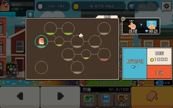 人物升级,购买武器及道具进行强化。