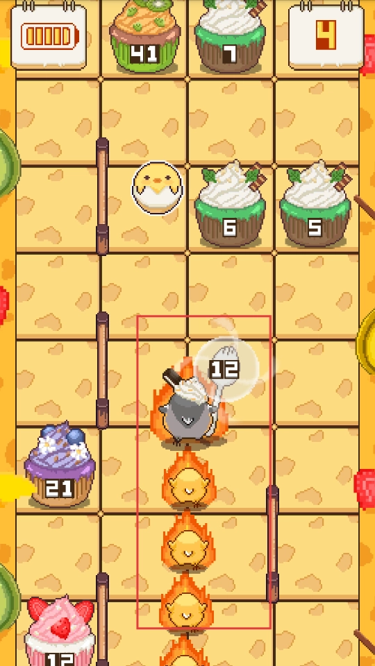 操控肥啾在方格场景中移动,收集各类道具、躲避途中障碍,还能借助小鸡等元素,通过消除蛋糕来推进关卡进程。