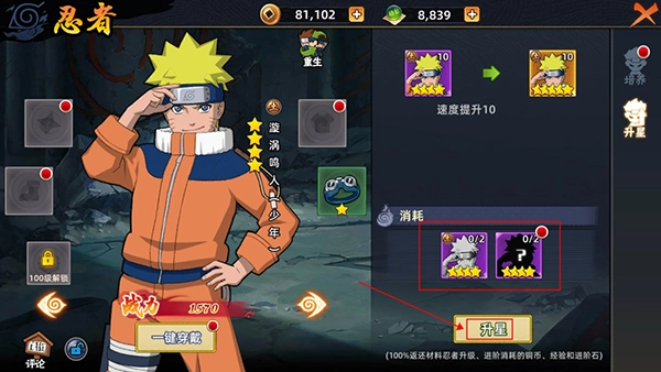 星级进阶规则:收集足量忍者卡牌即可完成星级突破,提升星级后,不仅能解锁全新技能,还能获取额外属性加成,从而显著增强忍者的综合实力。