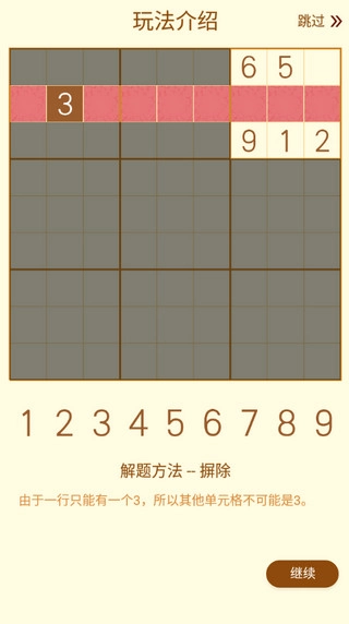 3、排除法:在每一行、每一列或每个九宫格内进行观察,要是某个位置无法填入其他所有数字,那就填入剩下的那个数字。