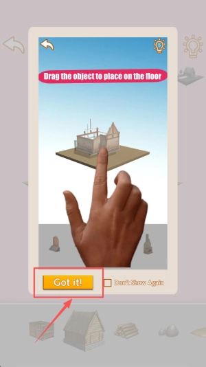 4、完成搭建:点击“Got it!”确认摆放,关闭提示继续布置下一个物体。