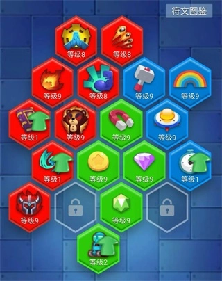不同符文的最高等级各不相同:敏捷符文16级满级,自动打造、自动合成符文19级满级,彩虹符文25级满级;绿色、蓝色等其他类型符文30级满级;红色符文里除了敏捷符文外,其余均不设等级上限,可无限升级。