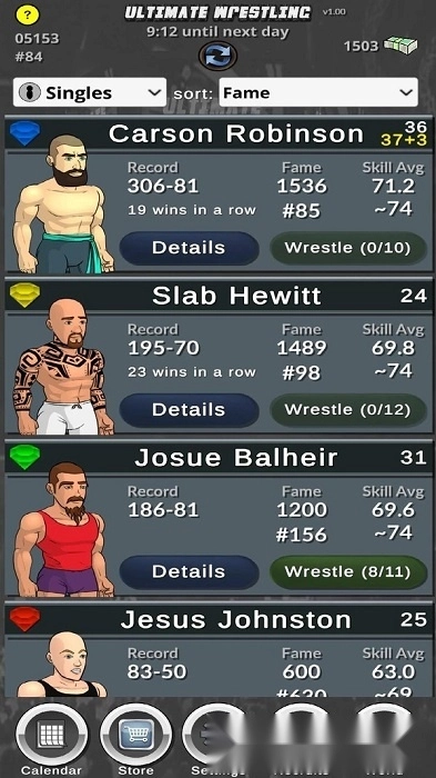 可以持续开启更多角色。角色的等级越高,其摔跤和竞技的能力就越强。