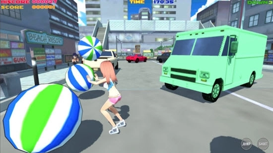 小姐姐要在限定时间内,用沙滩球击中尽可能多的人,还要把对手都撞得滚起来!