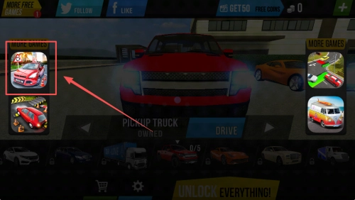 接下来,操作屏幕底部的左右方向键——左边是绿色箭头提示,右边是箭头提示,在停车场里顺着绿色标记行驶,同时收集金币。