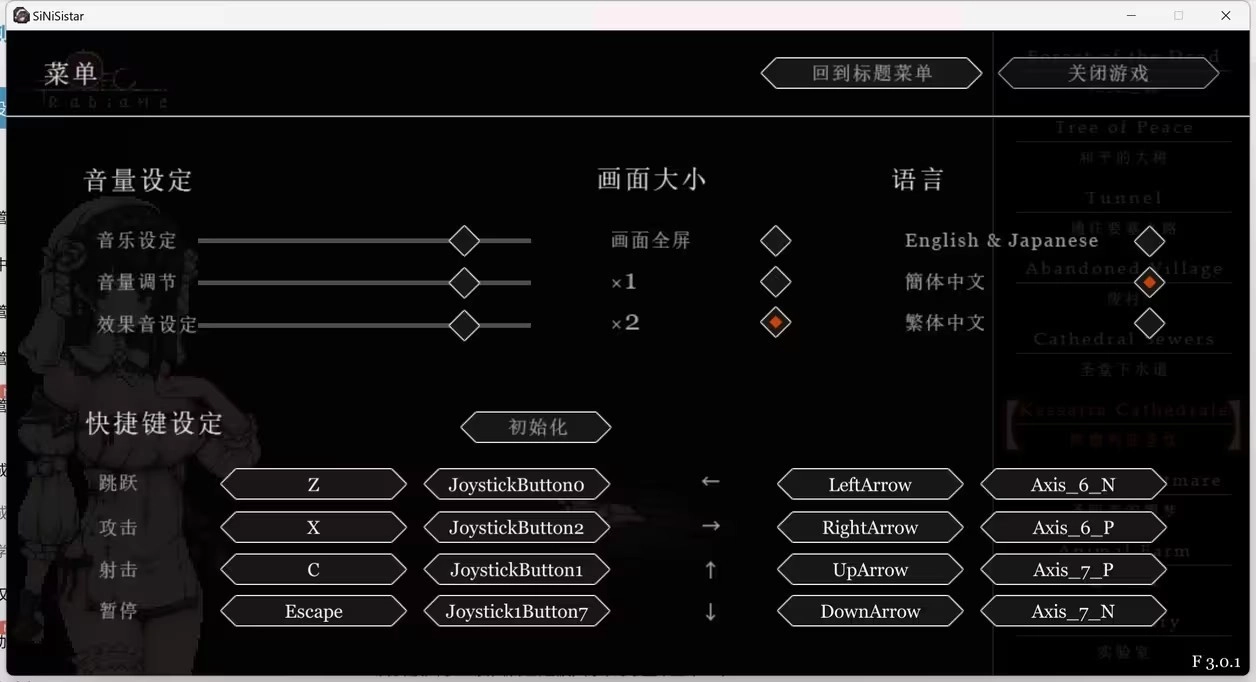 打通大眼之后就算通关了,此时可以在小教堂更换白色教服,还能选择无限箭矢模式;之后会出现回忆房间,在那里可以观看CG。
