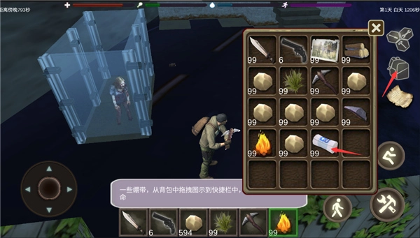 你可以先收集一些绷带,接着从背包里把对应的绷带图标拖到快捷栏,之后点击快捷栏里的绷带就能恢复生命值啦。