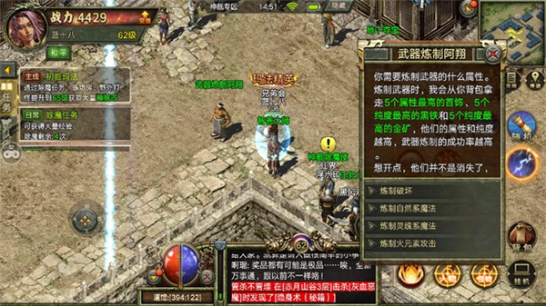 炼制时需备齐5件属性最优的首饰、5块属性最佳的黑铁,以及5份纯度最高的金矿——这些材料的属性优劣与纯度高低,会直接左右武器炼制的成功率。此外,炼制过程中的属性选择同样关键:战士只需专注于破坏属性即可;而法师与道士则需在自然系魔法、灵魂系魔法、火元素攻击等剩余属性中做出抉择,最终会依据所选方向,为武器赋予对应的属性加持效果。