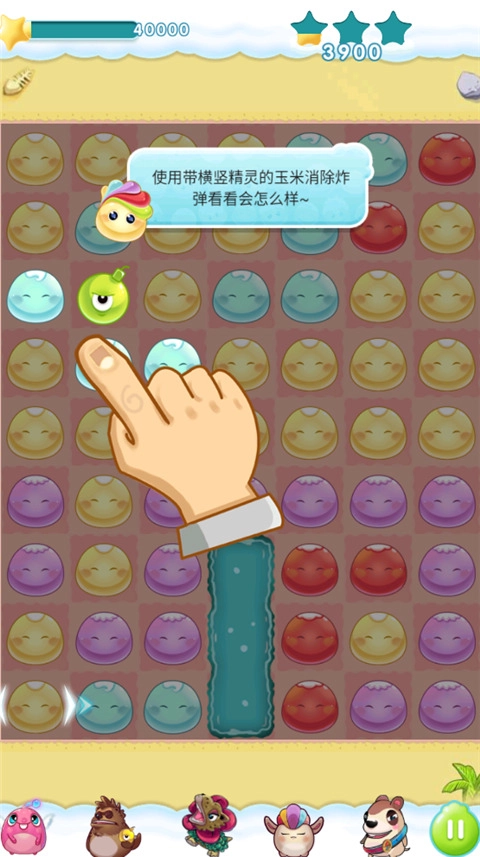 使用带横竖精灵的玉米消除炸弹看看会怎么样~