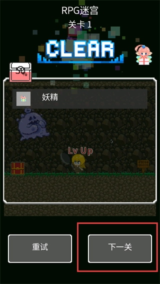 4、看到【CLEAR】通关提示后,点击界面下方的【下一关】按钮,进入新迷宫继续你的冒险挑战。