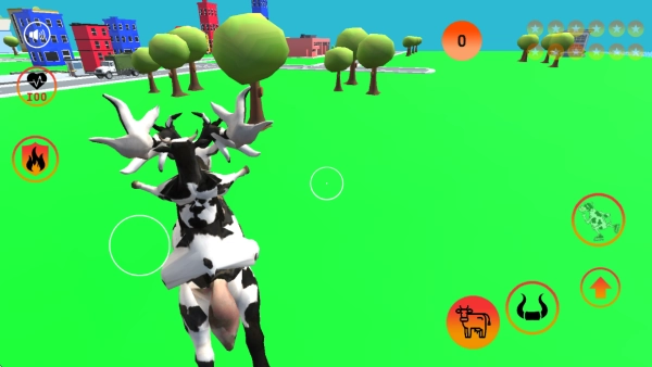 点击画面右侧的牛角按钮,即可让奶牛做出攻击。