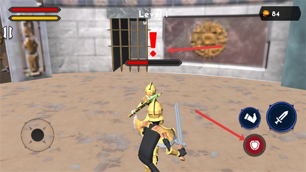 当敌人展开攻击时,点击右侧的盾牌图标来执行防御操作,以此降低自身承受的伤害。